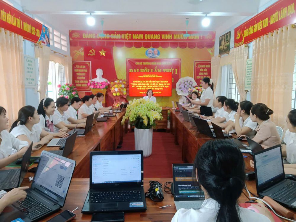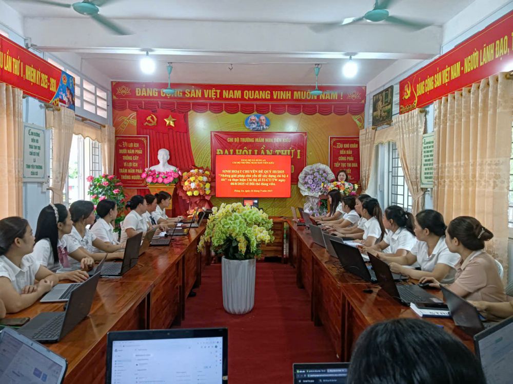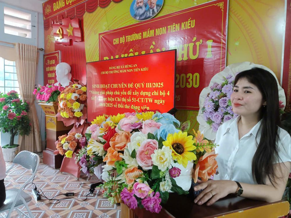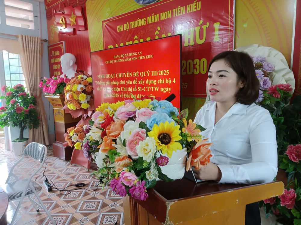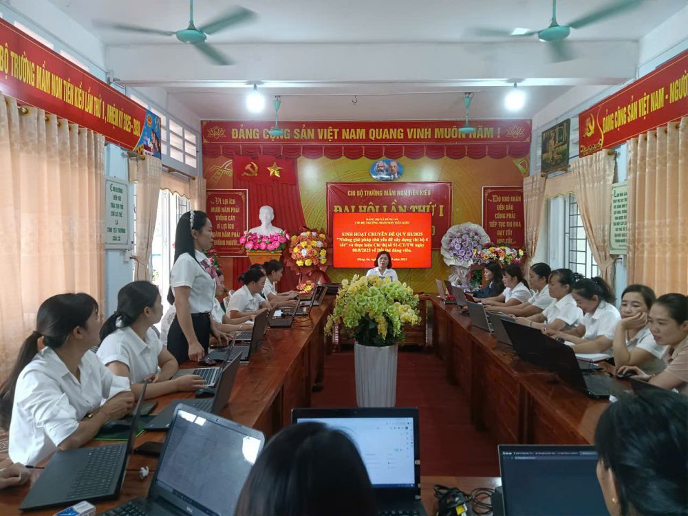 Chi bộ Trường Mầm non Tiên Kiều đã tổ chức sinh hoạt chuyên đề quý III với nội dung “Những giải pháp chủ yếu để xây dựng Chi bộ “4 tốt” và triển khai thực hiện Chỉ thị số 51-CT/TW ngày 08/8/2025 về đổi thẻ đảng viên”.