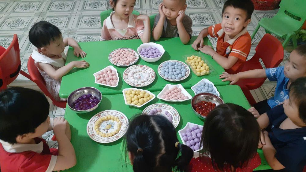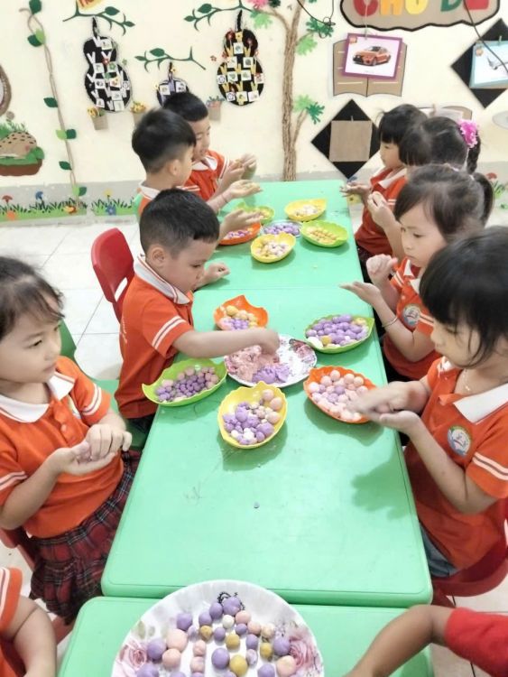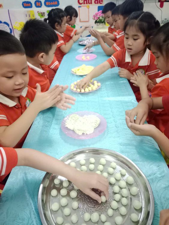 Thông qua hoạt động trẻ được tìm hiểu ý nghĩa ngày mùng 3 tháng 3 âm lịch và tham gia làm bánh trôi, bánh chay. Dưới sự hướng dẫn của cô giáo, các bé hào hứng nặn những viên bánh nhỏ xinh, thể hiện sự khéo léo và sáng tạo.