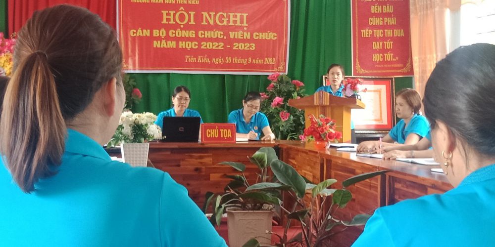 Ngày 30/9/2022 Trường Mầm non Tiên Kiều tổ chức Hội nghị CCVC năm học 2022-2023. Hội nghị có ý nghĩa quan trọng trong việc thực hiện quy chế dân chủ cơ sở, nhằm phát huy quyền làm chủ của cán bộ, công chức, viên chức, người lao động, góp phần xây dựng cơ quan trong sạch, vững mạnh. Hội nghị biểu quyết tán thành nghị quyết; Công đoàn và chính quyền nhà trường ký cam kết giao ước thi đua. Hội nghị đã tạo không khí sôi nổi, tinh thần đoàn kết thống nhất cao, thể hiện sự quyết tâm thực hiện thắng lợi nhiệm vụ năm học 2022-2023.