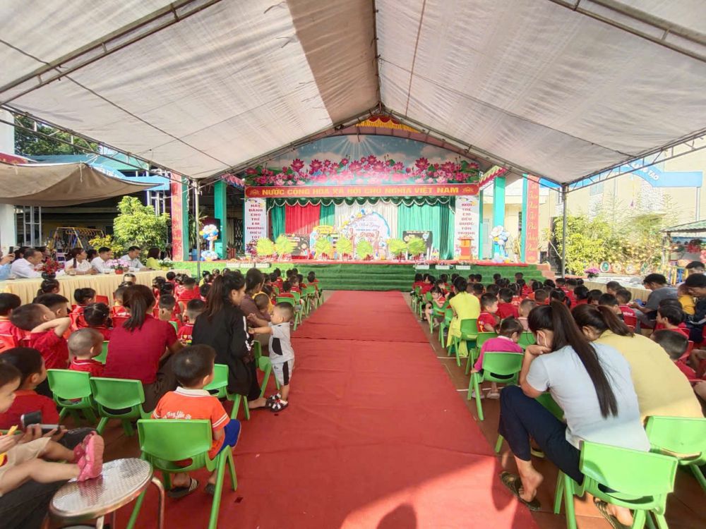 Buổi lễ diễn ra trong bầu không khí vui tươi, phấn khởi với sự hiện diện của các đồng chí: Đồng chí Trần Anh Tuấn – Ủy viên Ban thường vụ Đảng ủy, Chủ tịch UBMTTQ Việt Nam xã Hùng An; Đồng chí Nguyễn Văn Thắng - Ủy viên Ban chấp hành Đảng ủy, Phó giám đốc Trung tâm phục vụ hành chính công xã Hùng An. Sự hiện diện của đại diện ban quản lý các thôn bản, quý phụ huynh cùng toàn thể cán bộ, giáo viên, nhân viên và các bé học sinh thân yêu.